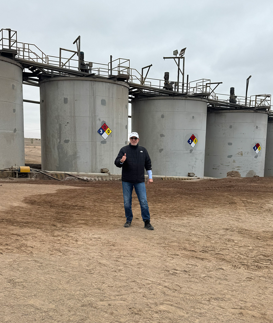 Laurent Mathiot stands in front of the tanks, which were quickly restored to full working order after being severely damaged.