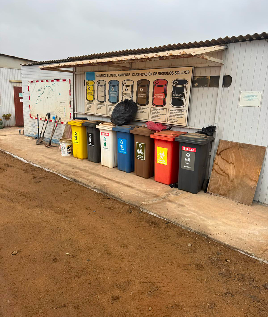 All waste produced within the plant is recovered and recycled (here, bins for recovering metal, glass, paper, organic waste, etc.). These bins are an example of compliance with the strictest hygiene, safety, and environmental protection standards.