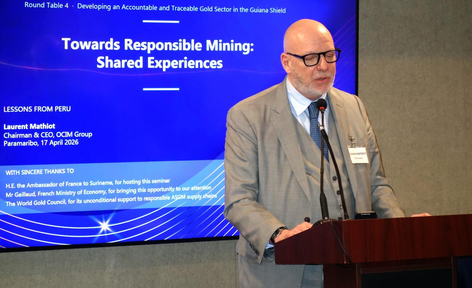 On April 17, 2026, Laurent Mathiot, Chairman and CEO of OCIM Group, took part in the seminar “Towards Responsible Gold Mining: Shared Experiences from the Guiana Shield”, organised by the French Embassy in Suriname. The event brought together governments, institutions and operators from across the Guiana Shield region around a shared question: how to develop a responsible, traceable and accountable gold sector in this part of the world ?