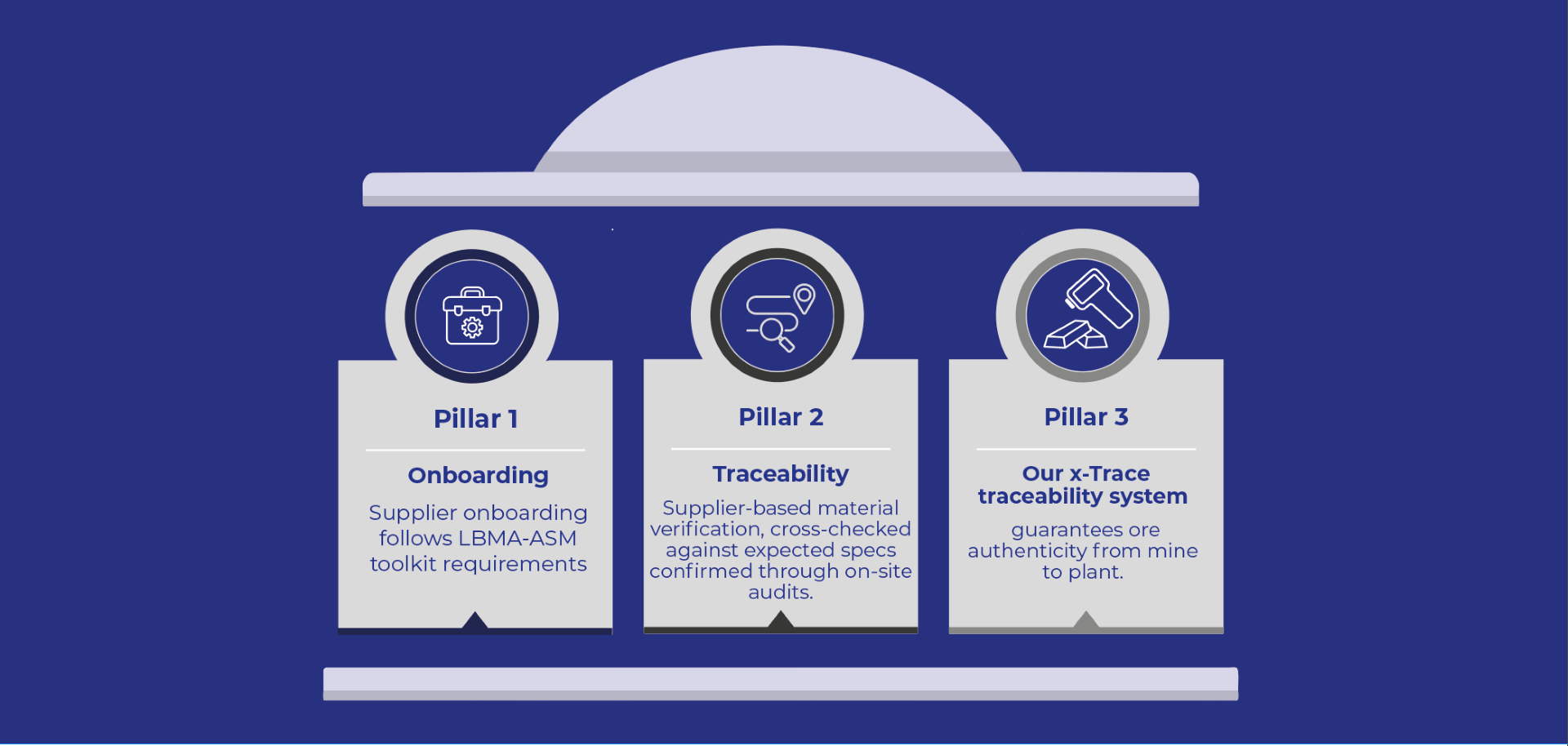The third pillar is our x-Trace traceability system, based on technology developed by the Swiss company aXedras. This makes it possible to scientifi cally guarantee that the ore arriving at our plants actually comes from the audited mine and has not been substituted or mixed with ore of unknown origin.
